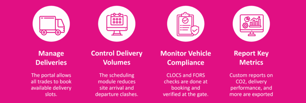 The system’s real-time tracking, automated booking, and reporting capabilities allow us to optimise scheduling, prevent bottlenecks, and enhance overall site productivity. Additionally, the detailed data insights help us monitor carbon emissions and drive more sustainable logistics solutions, aligning with our commitment to reducing environmental impact.