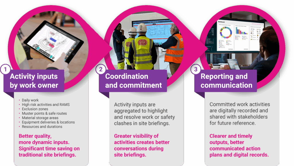 It replaces fragmented systems and reports with a single digital platform where all activities, risks and commitments are logged, visualised and shared daily.