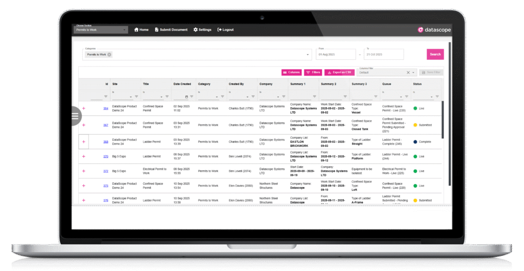 It also integrates with DataTouch, which means that critical safety documents can be linked with agreed work activity.