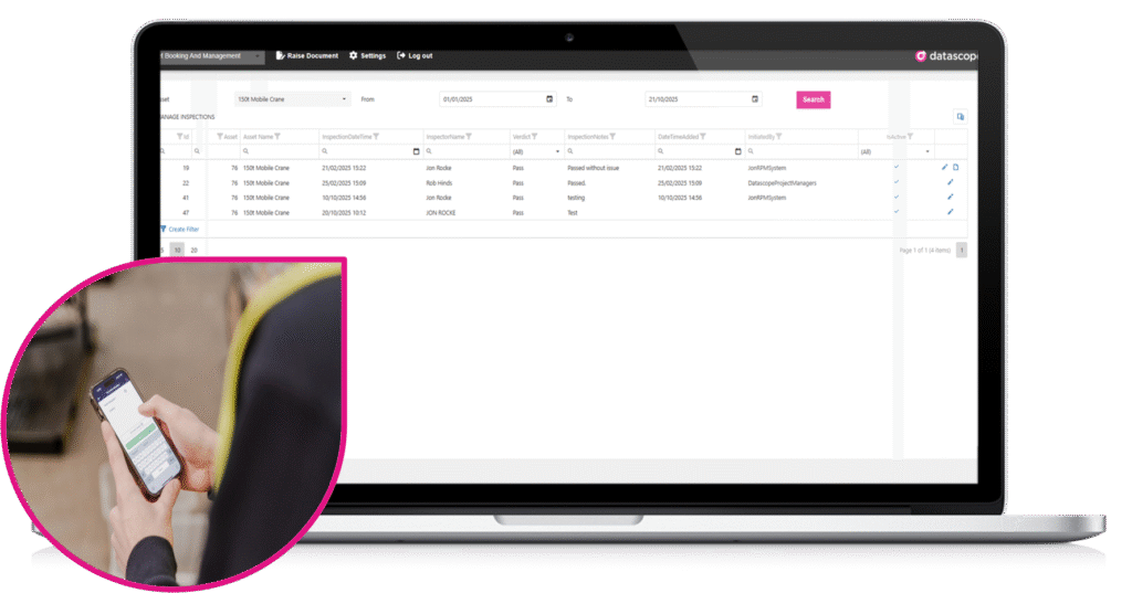 Yes. Every inspection, booking, and issue logged in DataScope is stored with a full digital audit trail. This provides instant access to compliance records during audits or investigations, making it easier to demonstrate safety standards, protect the business, and reduce risk exposure.
