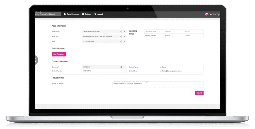 Workers can request, book, and sign out assets through the DataScope app, with full approval trails. This reduces delays, ensures equipment is always available when needed, and links bookings directly to authorised operatives for accountability.