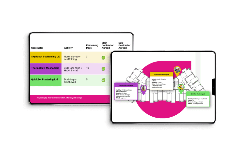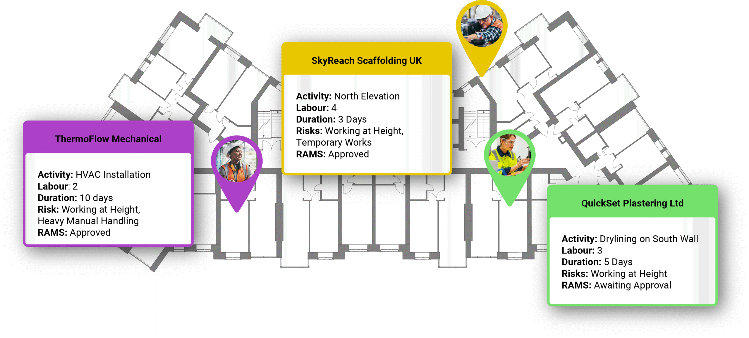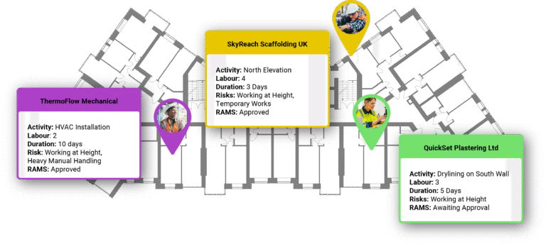 Get a live view of every sub-contractor’s activity, every day. What they’re doing, how long they’ll be there, how many people and what risks have been identified. Complete clarity and zero blind spots for the team and the wider workforce.