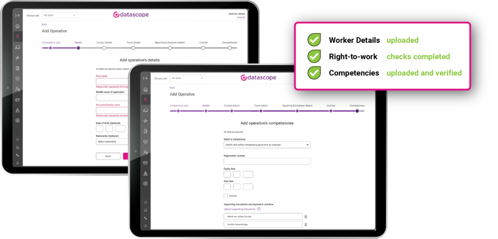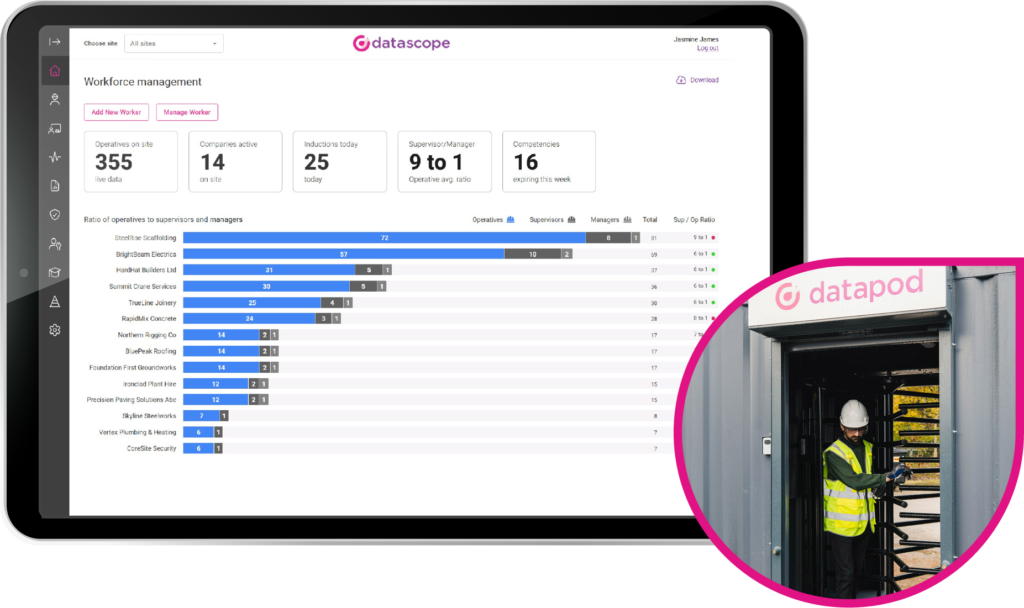 By combining pre-verification, access control, and live workforce visibility, DataScope removes uncertainty and gives construction teams total confidence in who is on site at all times.